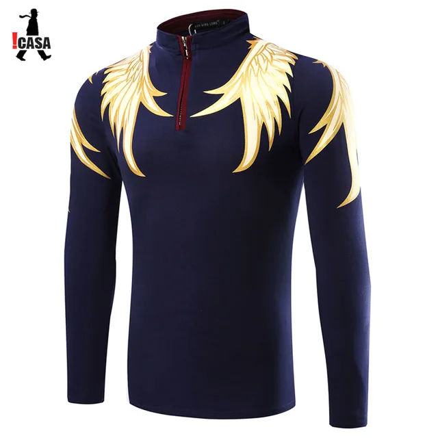 Us 15 44 Merek Baru Pria Polo Shirt Kemeja Klasik Sayap Pencetakan Ritsleting Desain Polos Kemeja Lengan Panjang Laki Laki Di Polo Dari Pakaian Pria