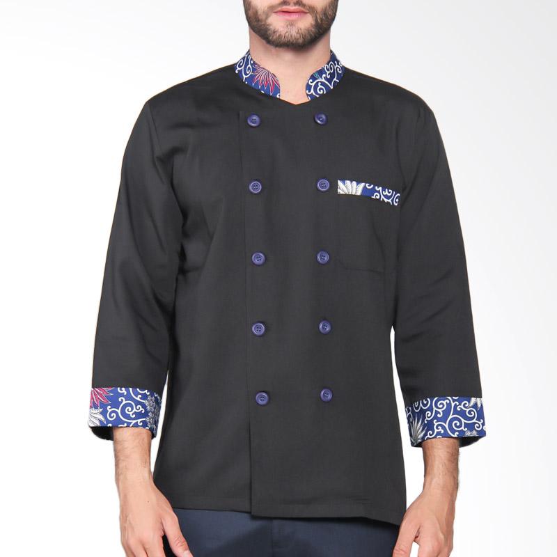Jual Chef Series Emerald Batik Tangan Panjang Baju Koki Hitam Biru